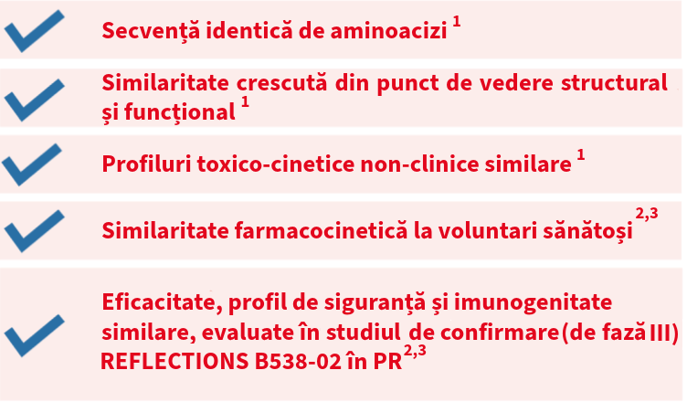 Aprobarea AMSPARITY® este bazată pe totalitatea dovezilor care susțin biosimilaritatea, inclusiv:1-5